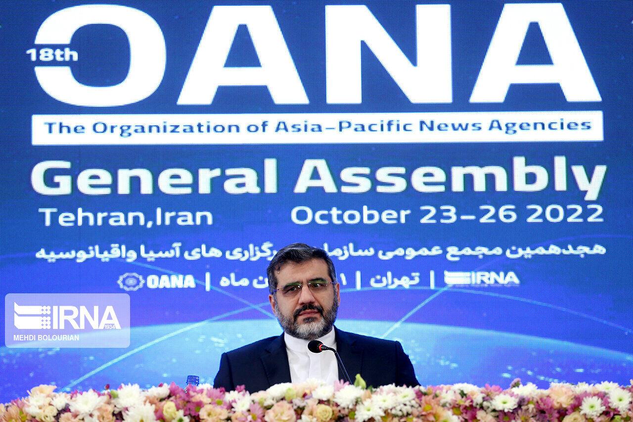 وزیر فرهنگ و ارشاد اسلامی گفت: تلاش میکنیم در دورهای که مسئولیت مجمع عمومی اتحادیه خبرگزاریهای آسیا و اقیانوسیه بر عهده جمهوری اسلامی است، در عرصه رسانهای بینالمللی و اتحادیهها حضور قوی و موثر داشته باشیم. در دوره جدید فعالیت اوآنا به طور فعال در جهت ارتقای هویت جمعی این اتحادیه حرکت کرده و از این فرصت برای رساندن صدای مردم و مظلومان به جهان استفاده می کنیم.
