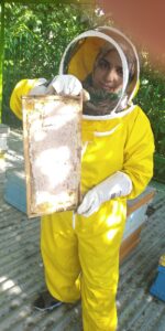 در بخش دیگری از این محل خانم رحیمی زنبورداری می کنند و کندوهای زنبور عسل را قرار داده اند . تمام تولیدات زنبورهای عسل نیز کاربردی هستند و هیچ دورریز ندارند .